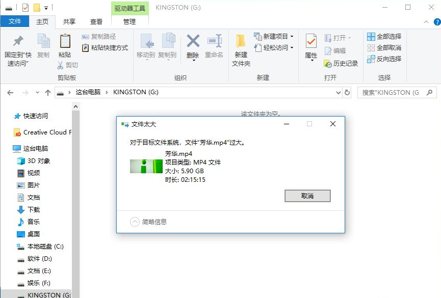 在弹出的窗口中输入“convert G: /fs:ntfs”(G为U盘盘符)回车,等待执行命令,转化完成。如图所示: